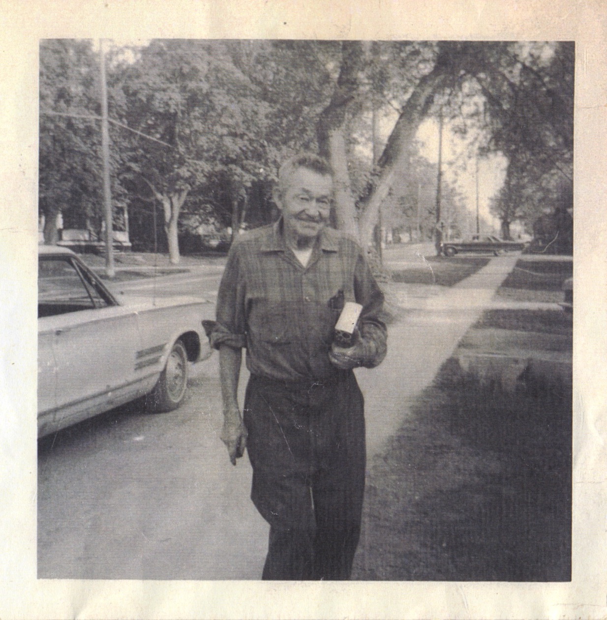 Photo of Joan McLean's father, Arthur James Holder Kidd, in on King St. South in Cookstown, 1972.