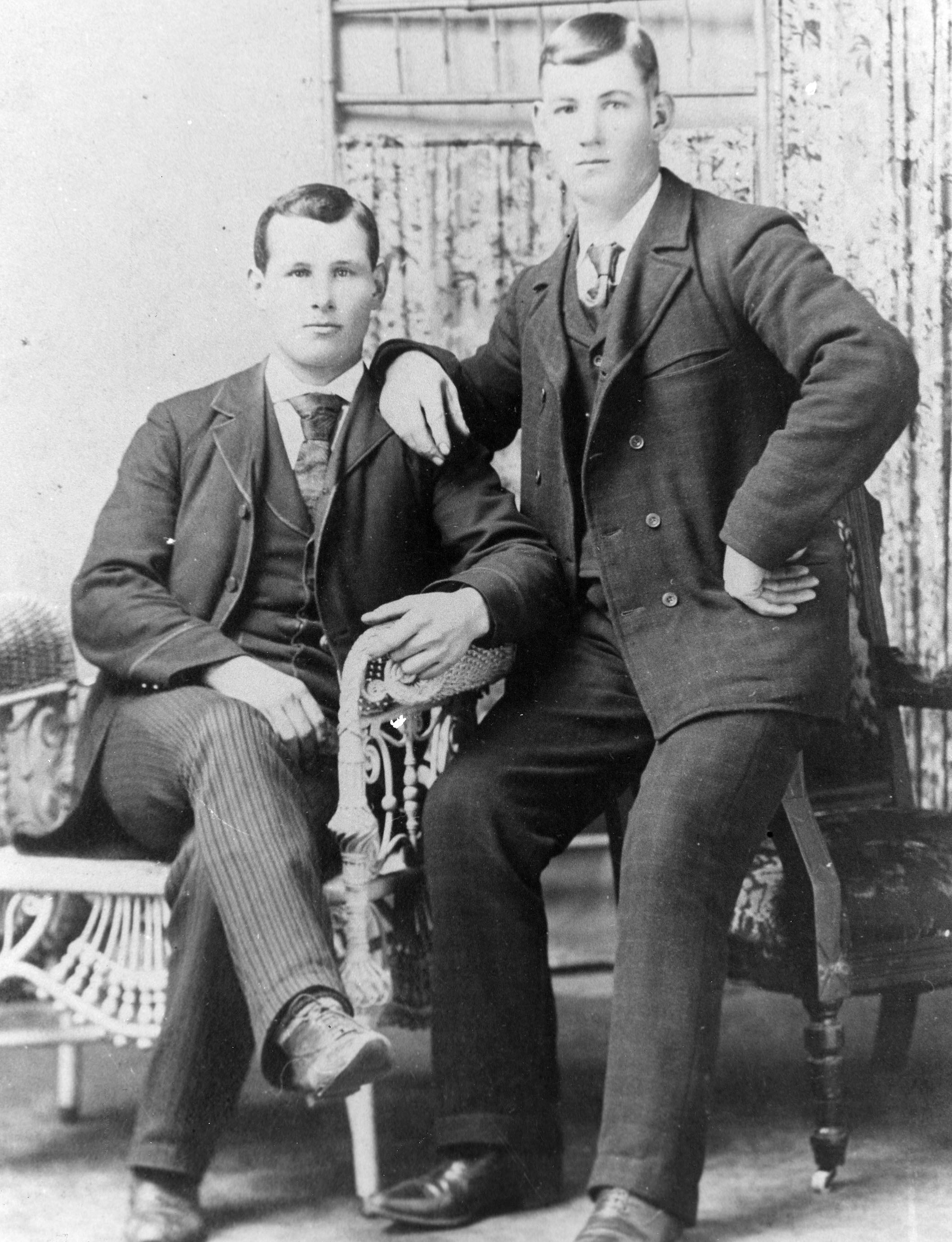 Touse Bateman (left) and Jonathan Bateman (right), great uncle to Kay Allan, Ruth Allan, and Eva (Allan) Reid. Touse lived in Bell Ewart and owned three houses there. He lived in one and rented the other two.