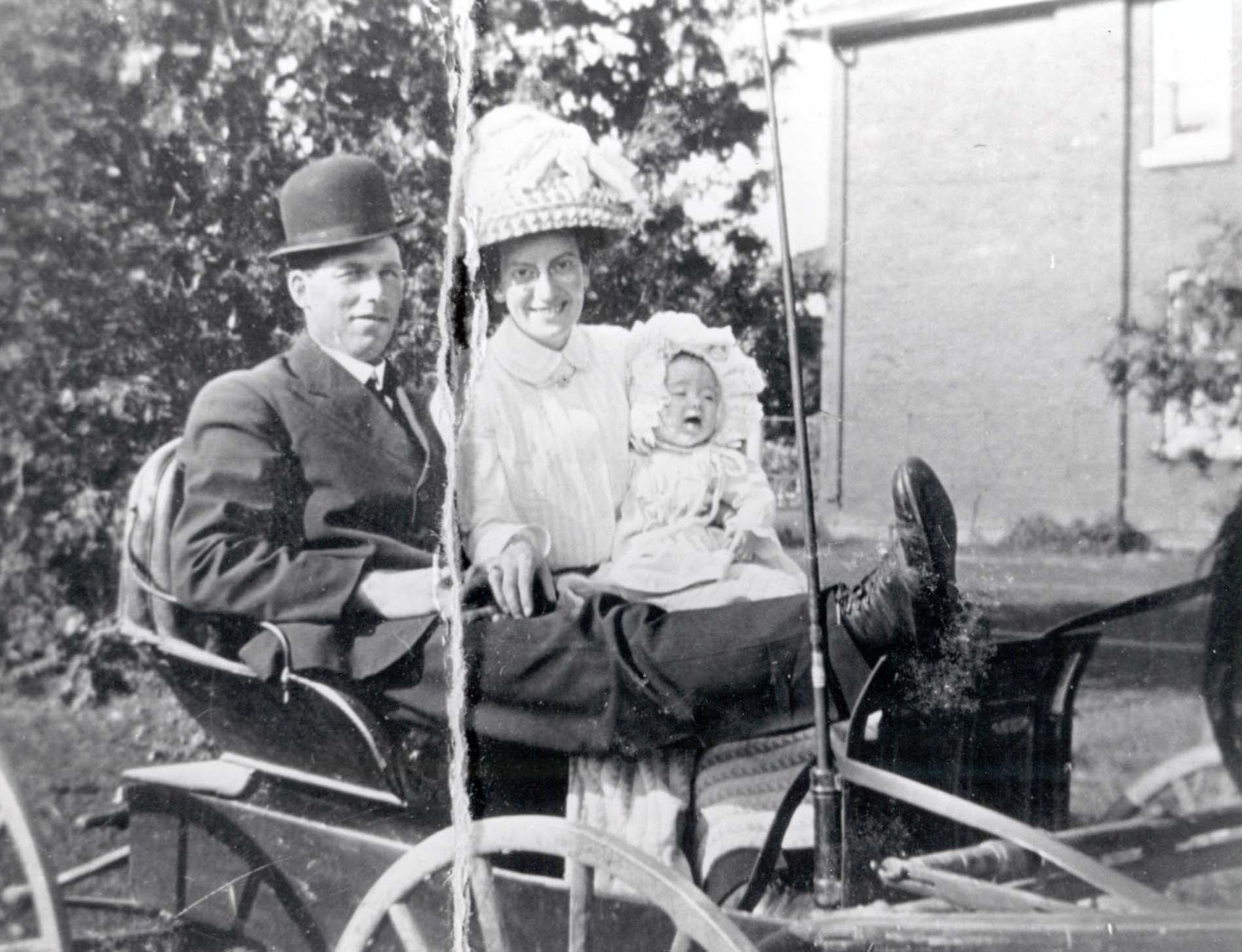 Family photo of Mr. and Mrs. Selby Carr with their daughter, Marion.