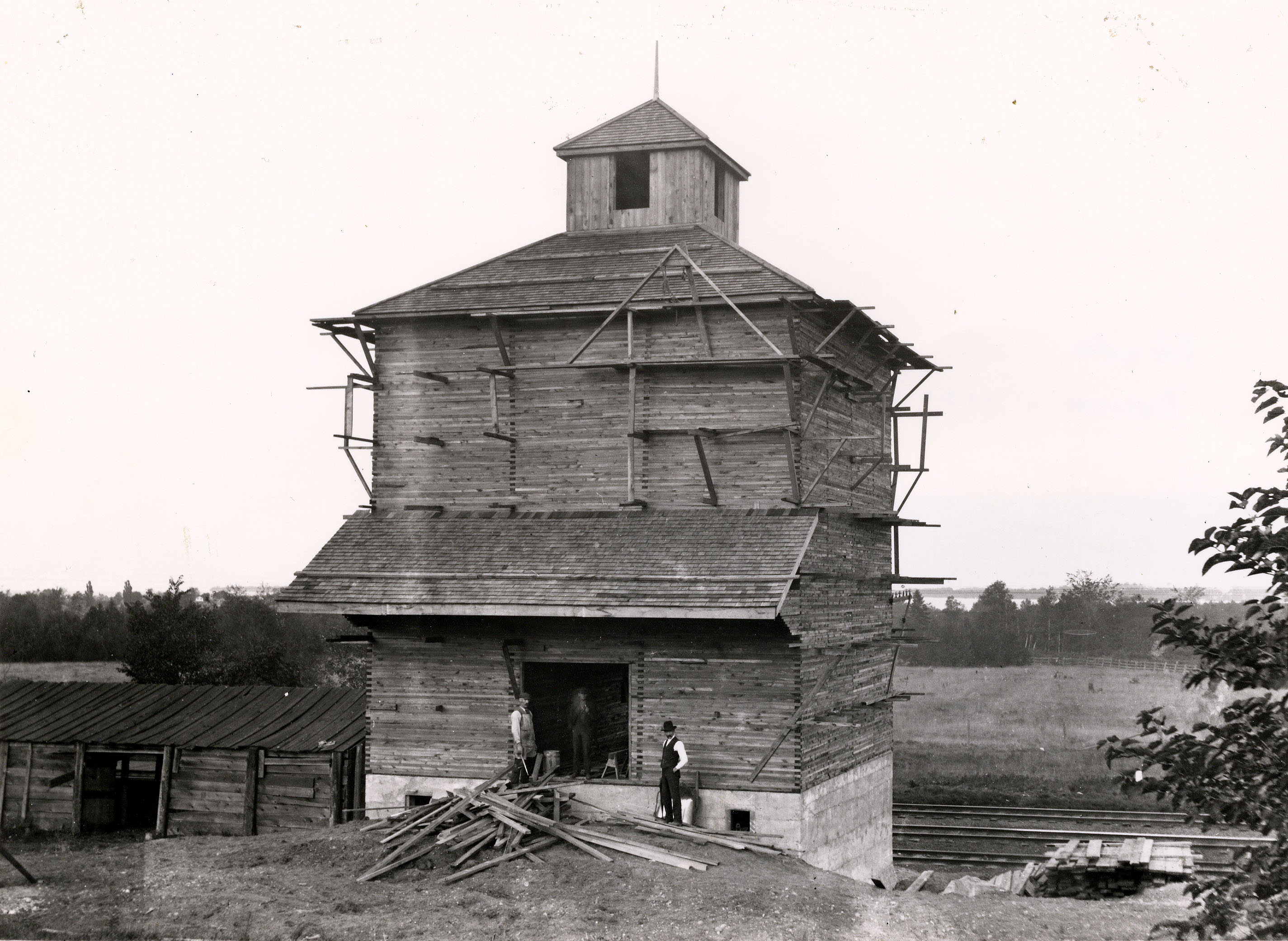 The Lefroy grain elevator began construction in the early 1900s and was built by Albert Kirkpatrick.