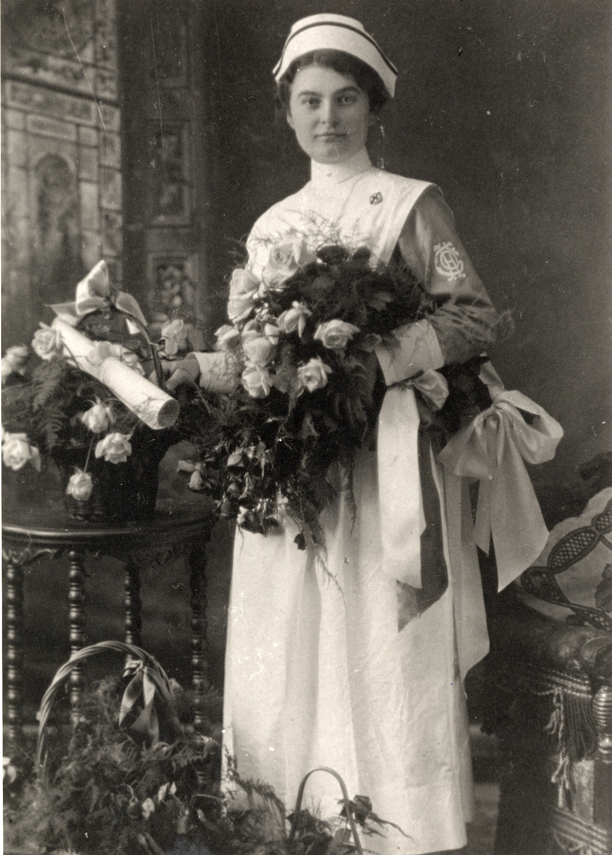 Nursing graduation portrait of Tillie Donnelly, the daughter of Hugh Donnelly II and Rebecca Wray, taken in 1912.