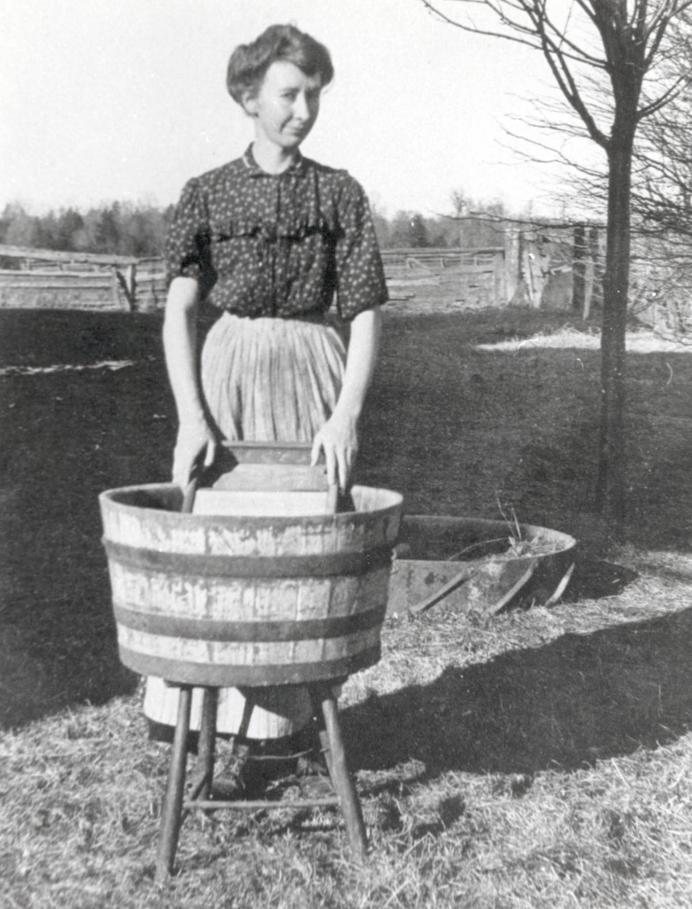 Photograph of Ida Law (1880-1956), later Mrs. Charles H. Hindle, Jr., on washing day.