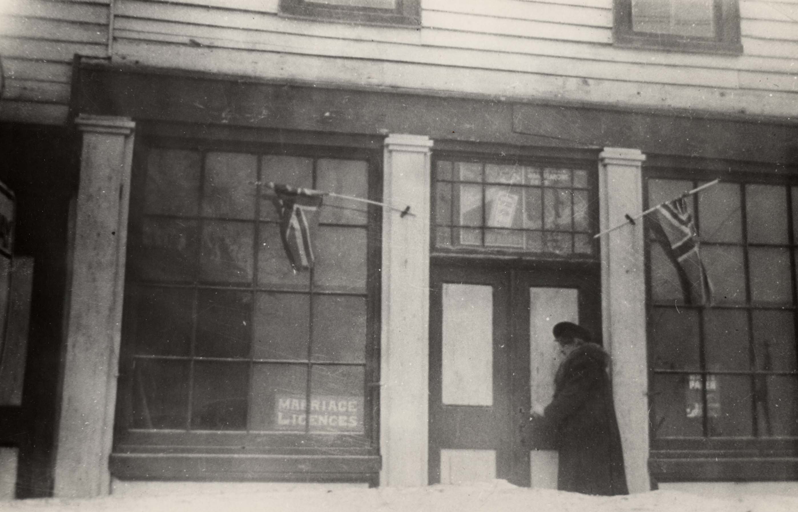 Innisfil Township office and library, circa 1930. - known as the old Sloan building, it was in the family for 100 years; - it was home of James Sloan who settled in Churchill in 1850; - it was demolished by Gregg Davis in 1947.