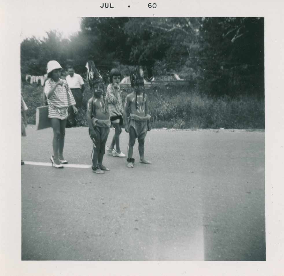 Photo of several unidentified children in costume for the Alcona Beach Club parade of July 1960.