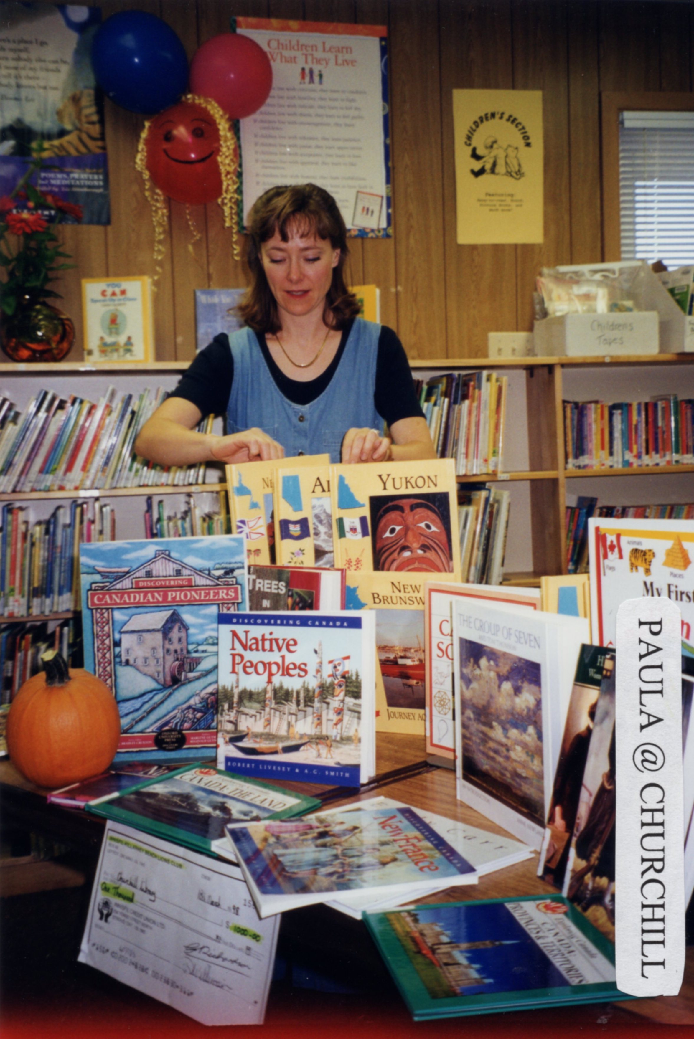 Photograph of Paula Wright standing in front of a book display at Churchill Library Branch.