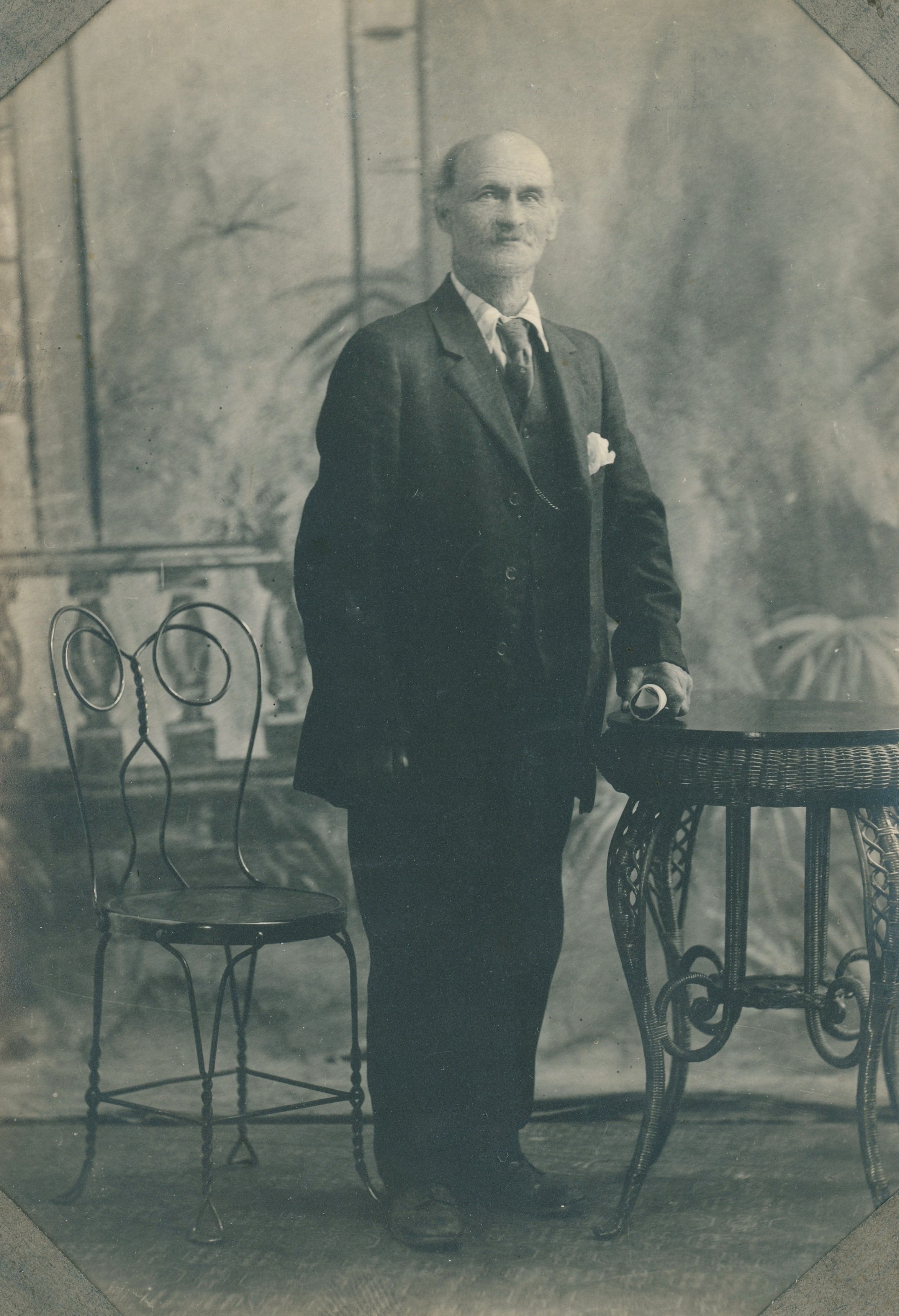 Studio portrait of William Harris, standing. His wife was named Lizzie Luscomb.