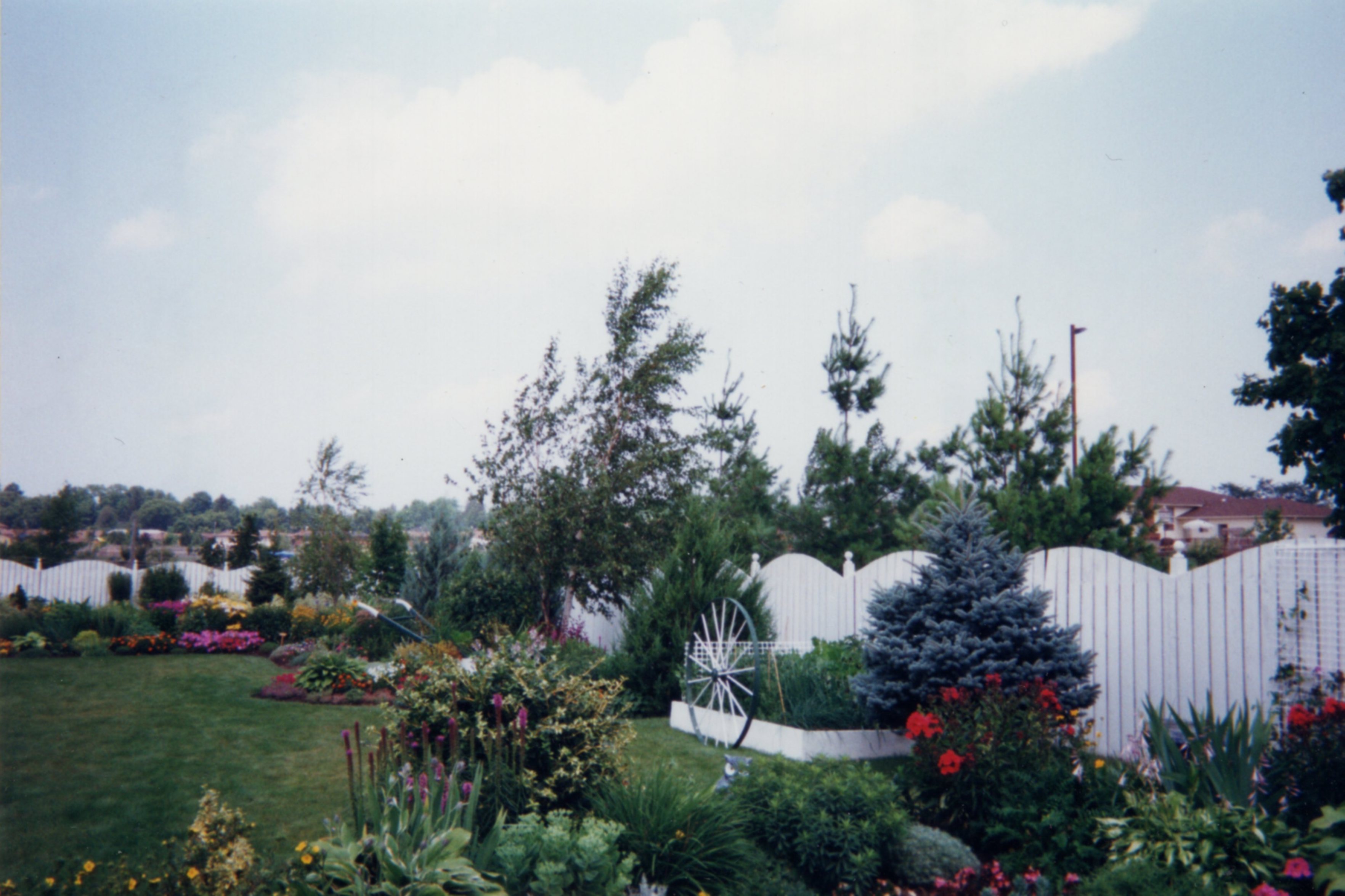 Colour photograph showing a garden, possibly belonging to June Keogh.