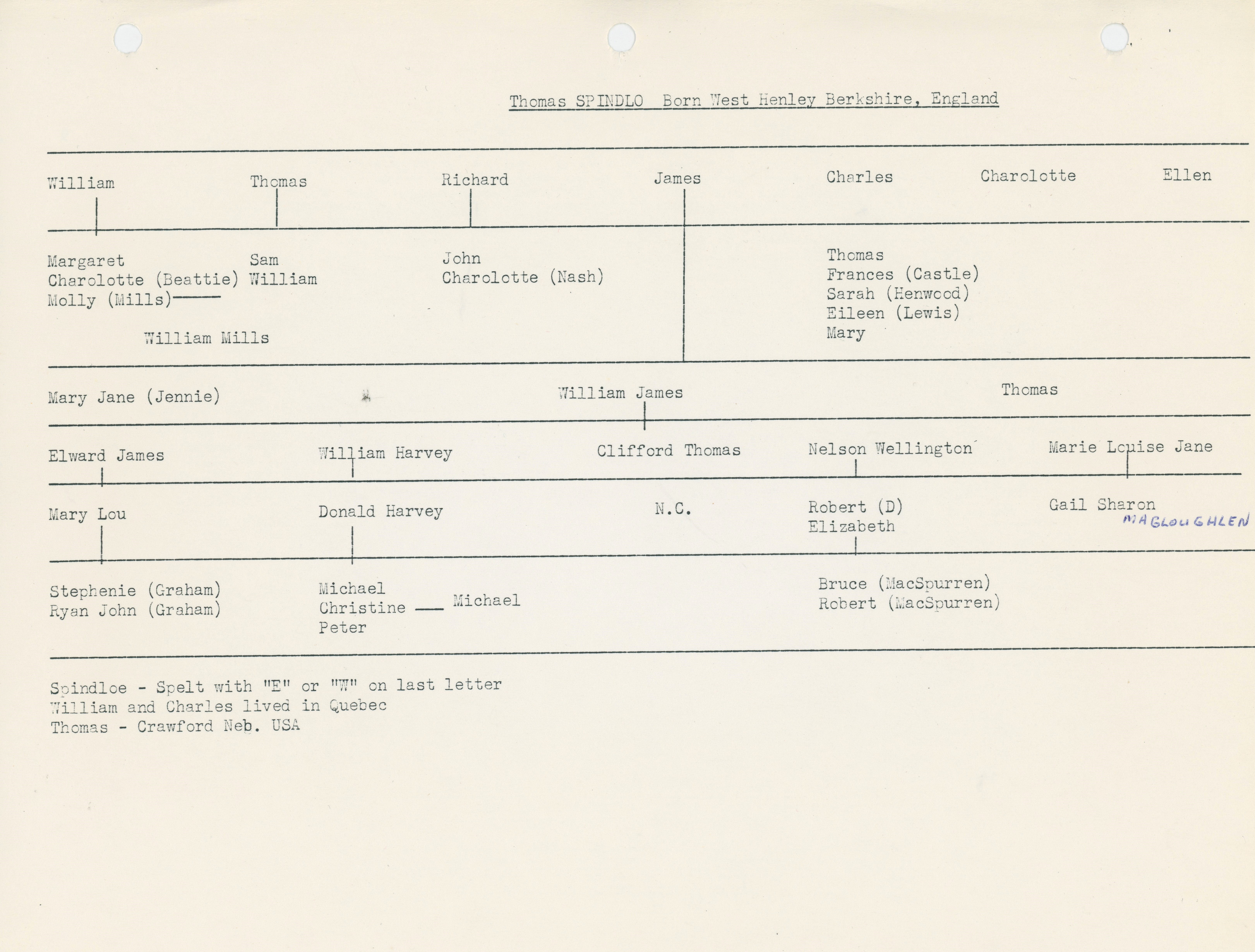 Family tree of Thomas Spindlo (Spindloe, Spindlow), born West Henley, Berkshire, England