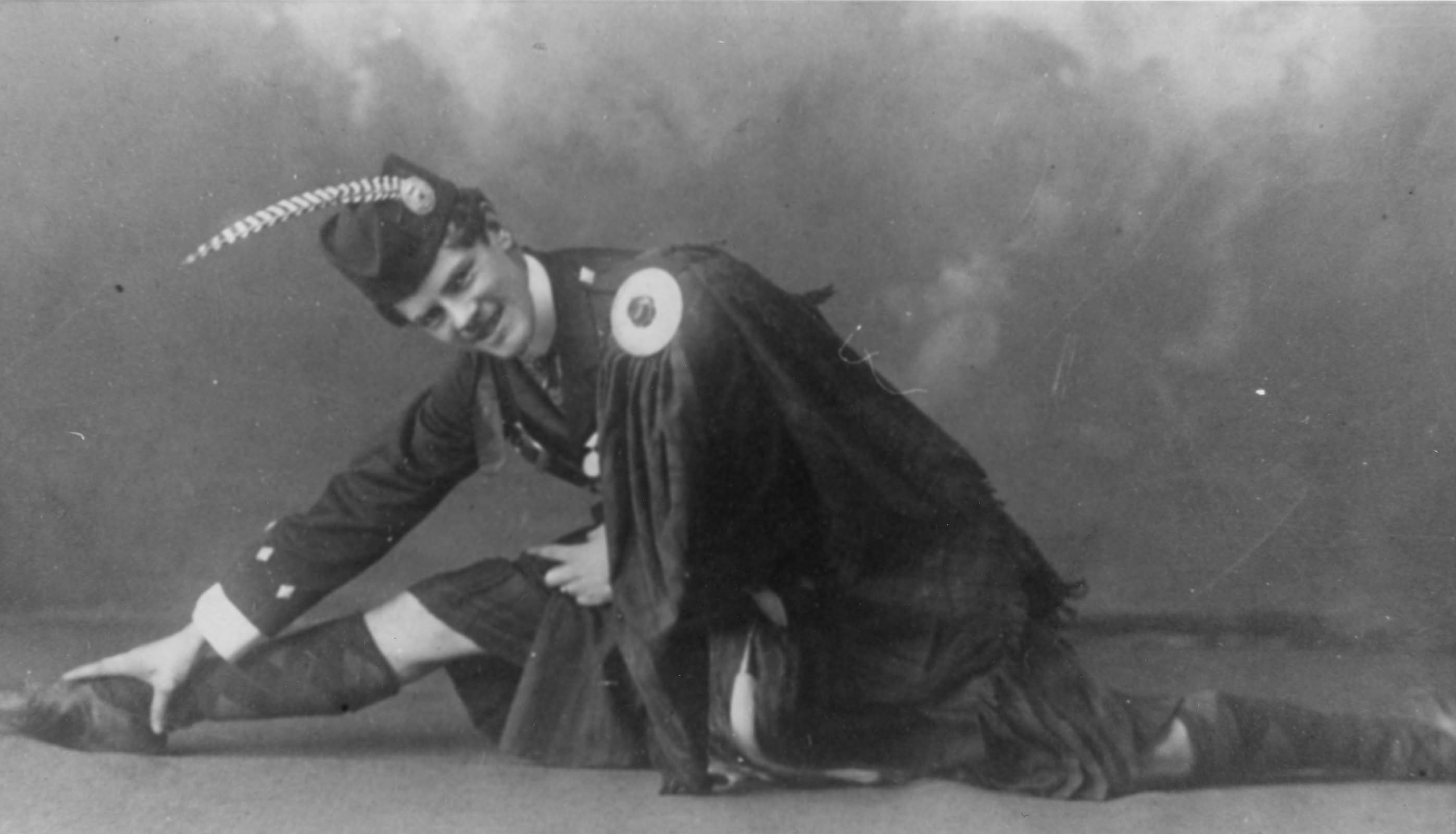 Lorne D. Jack, son of Thomas Jack, pictured in his dancing costume. He later owned Tent City Dance Hall, at the foot of the sixth line at the Lake, on the north side. He started the business of using tents, hence the name. Lorne Jack was a dancer before starting the business at Tent City and danced in both Toronto and New York City. Costumes