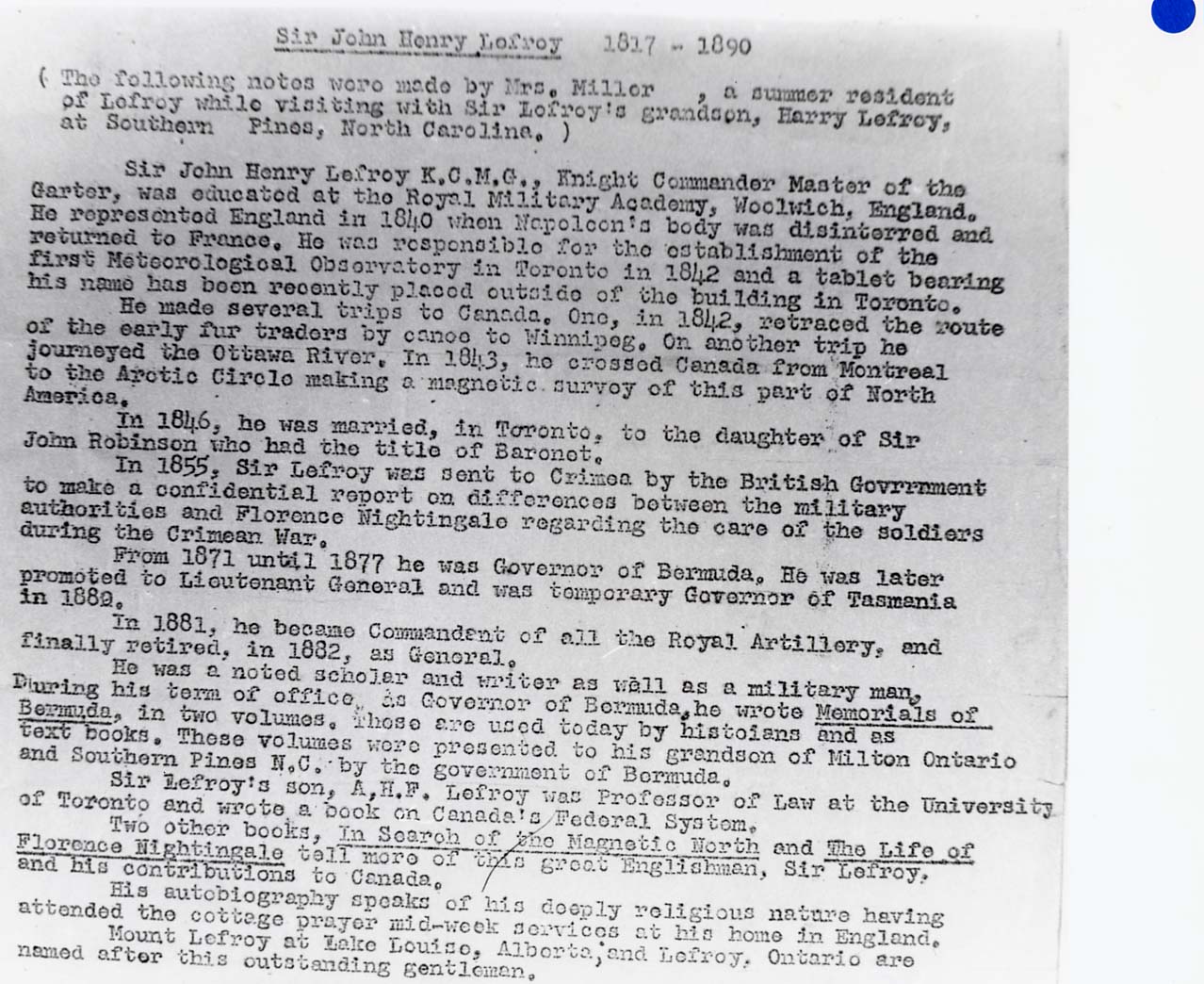 -about Sir John Henry Lefroy(1817-1890) for whom Lefroy was named