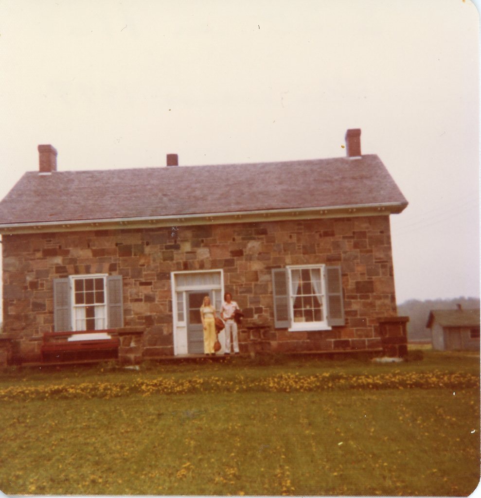 Colour photo of Ken and Kim Sharpe standing in front of the Barclay home, which was originally built in 1860 and burned down in January 2015.