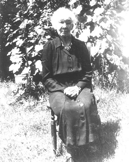Mrs. Amelia Quantz' mother, Jane Reid at farm home, 5th Line, lot 23, Bell Ewart
