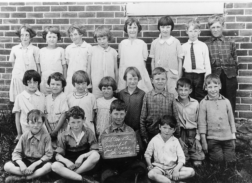 Front (l to r): Kenneth Hubbert, Ernest Reid, Archie Kennedy, Murray Hubbert, Middle row: Edith Little, Jean Kennedy, Velma Hubbert, Grace Kennedy, Reta Miller, Neil Kennedy, Lewis Brown, Roy Miller Back row: Marie Dyer, Amy Kemp, Eileen Conron, Grace Stinson, Barbara Srigley, Doris Hubbert, Edgar Dyer, Walter Conron Schools