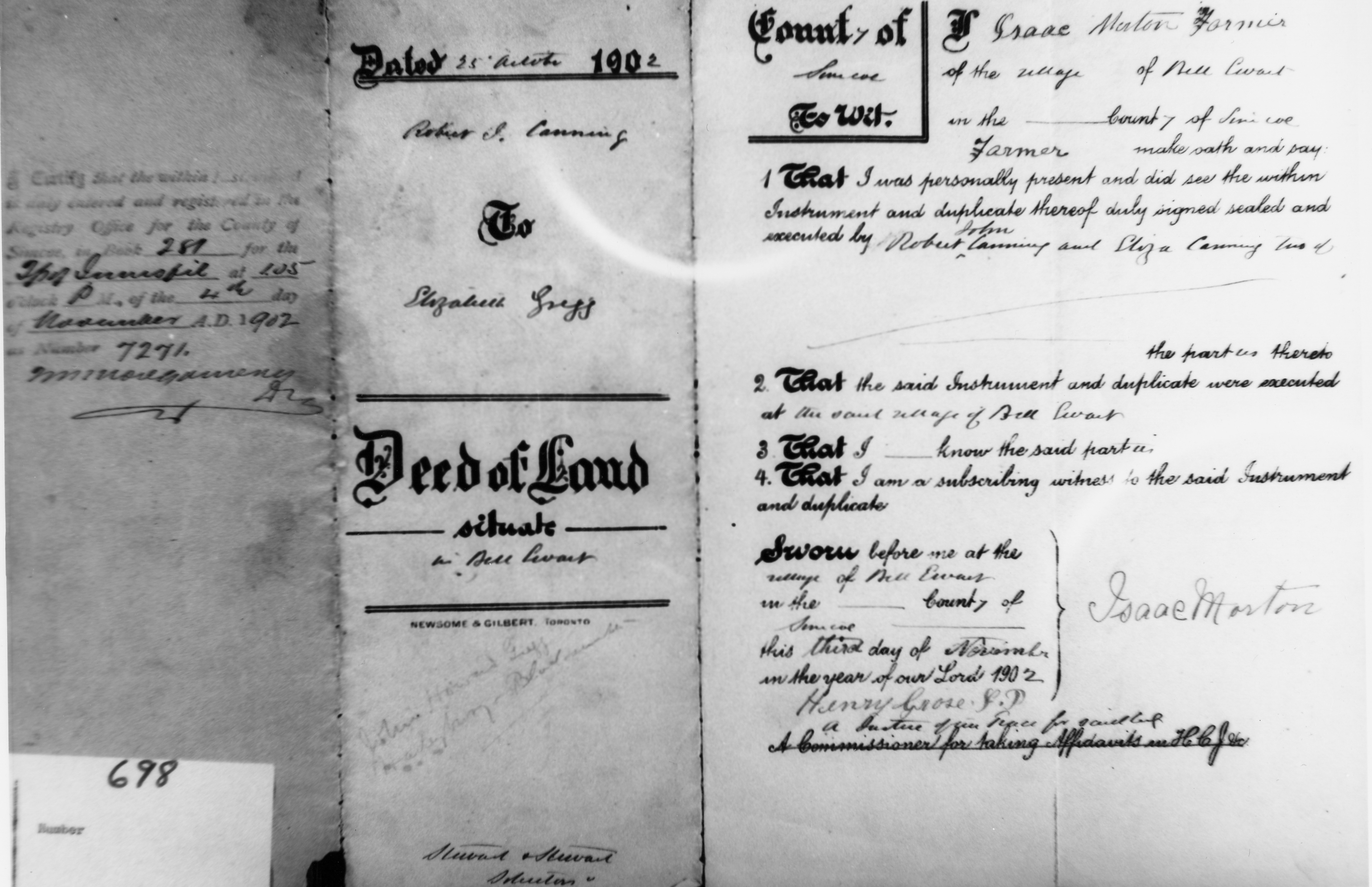 Robert Canning- Deed of Land
