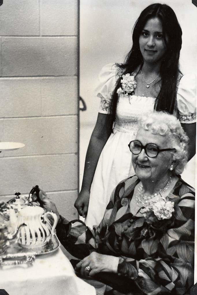Mrs. Monkman pouring and granddaughter Kathy Monkman, vocalist during the evening.