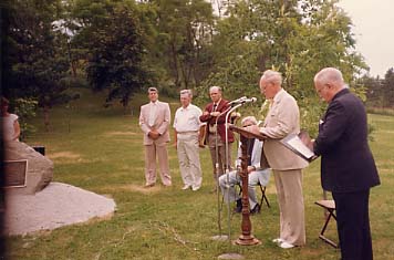 Dedication of Plaque in Honour of Neil McBride. Jack Dinwoody at Lectern. Rev. K.J. Rooney on right.