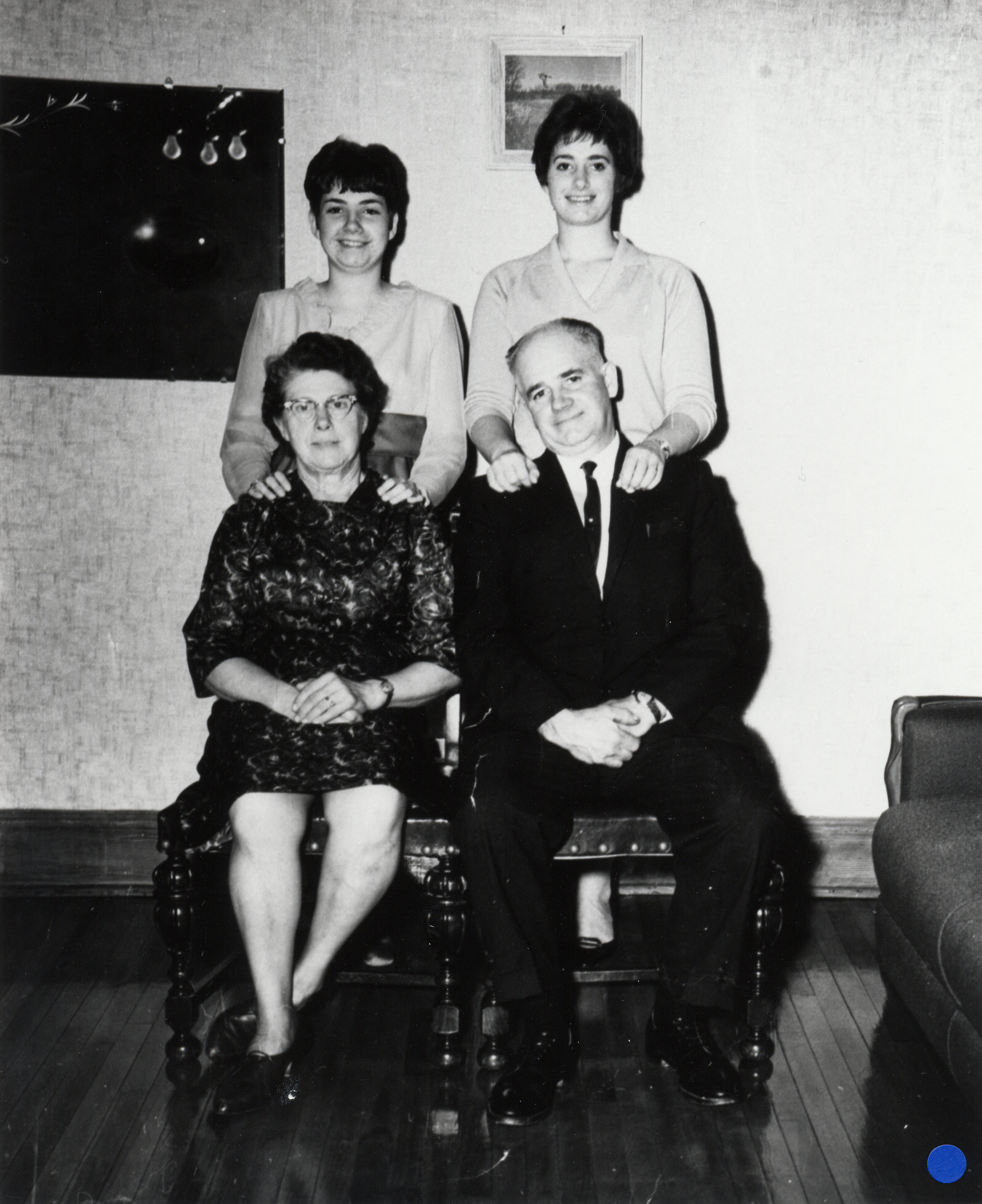 Mr. and Mrs. James Rainey and their family. Front row: Mrs. Rainey (nee LillianFox), James Rainey. Back: Bonnie (Mrs. Fred Jolie), Reta (Mrs. Gordon Brown.