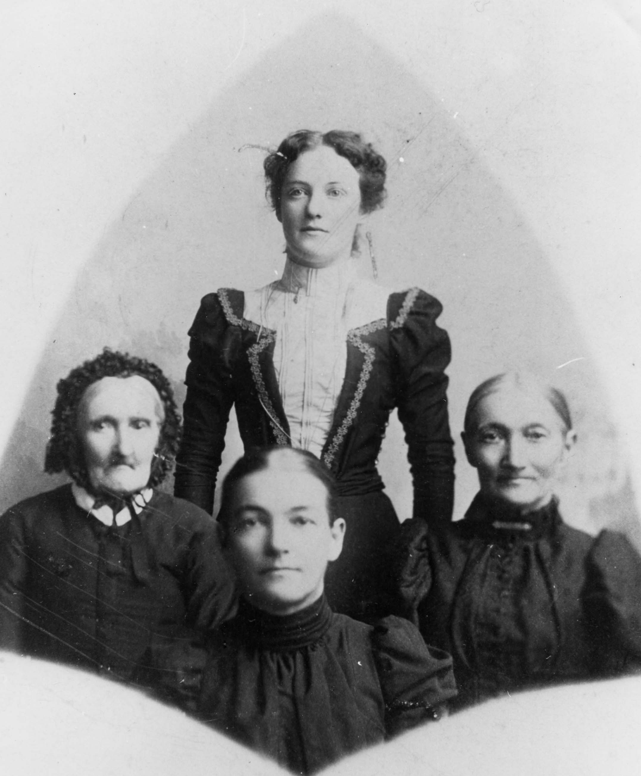 Left - Great Grandmother Sawyer, Miss Kay Allan's and Mrs. Eva (Allan) Reid's Great Grandmother. Others in the photograph are unknown. Great Grandmother's maiden name is Monica Touse.