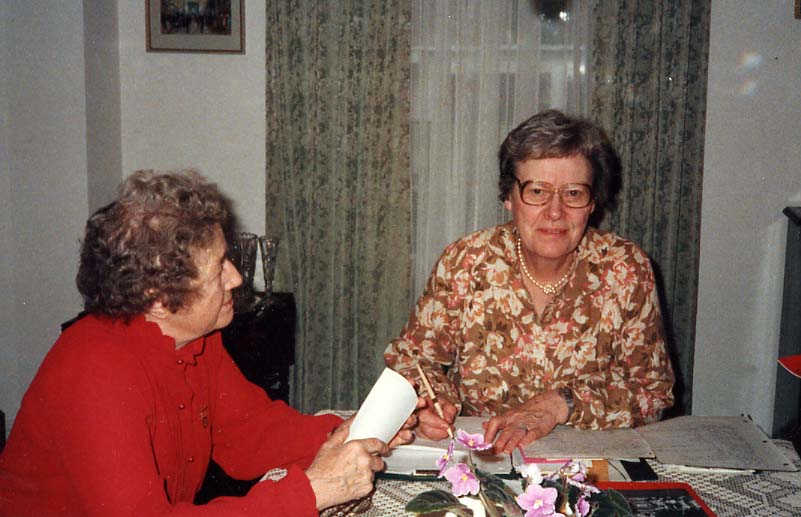 Olive Parker (Mrs. Harold), Secretary 1985 Harriette Rooney (Mrs. K.J.), President 1985 At home of Muriel (Mrs. Hector) Smith. Annual Meeting in April.