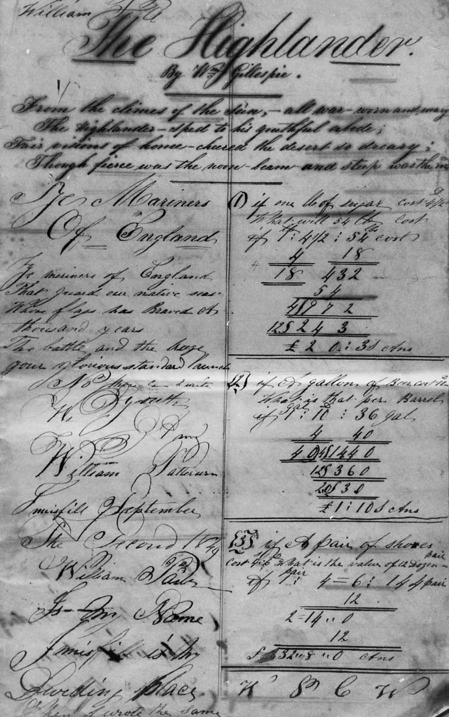 Photo of William Patterson's school notebook. Mr. Patterson was great grandfather to Jean Ross (née Cowan).