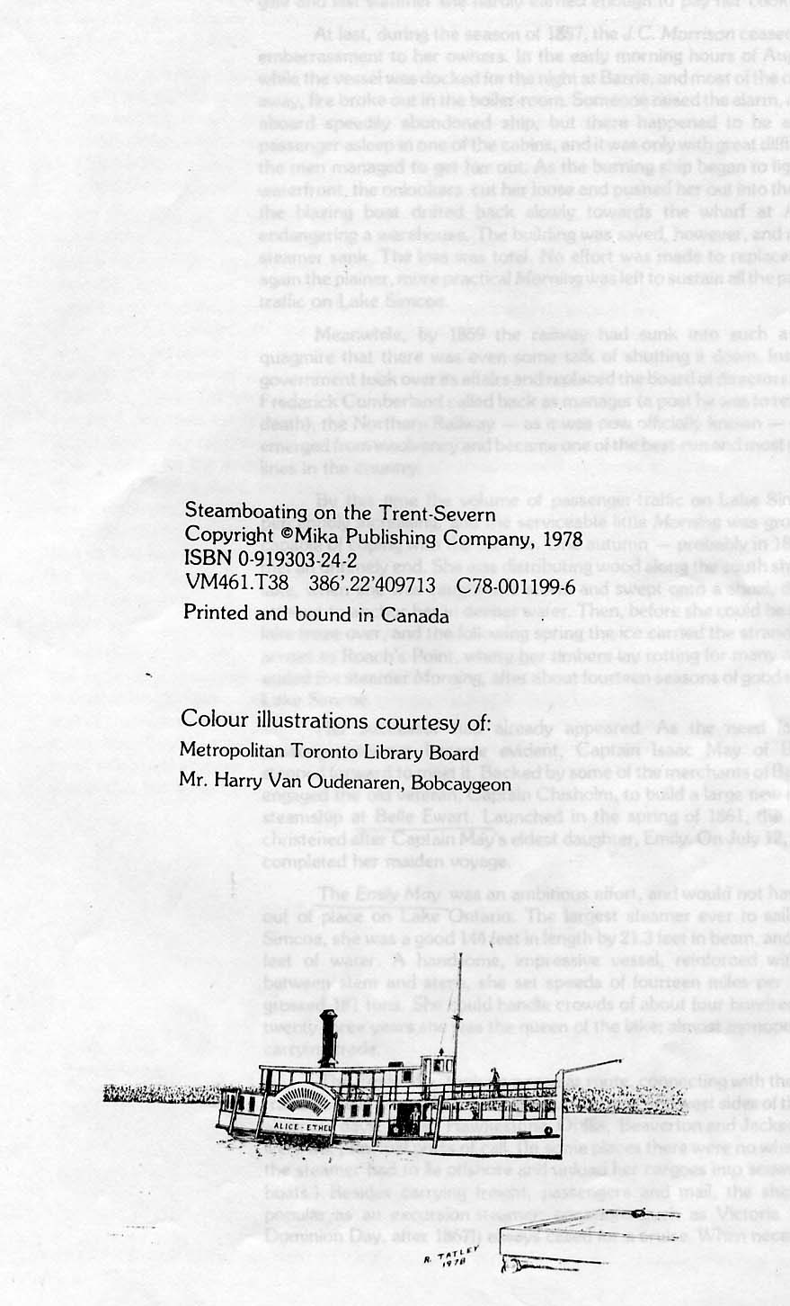 Part of the book "Steamboating on the Trent-Severn", by Mika Publishing, dealing with lake boats out of Bell Ewart Navigation - Boats May, Captain Isaac Chisholm, Captain Belle Ewart, Emily May, Railway Northern Lumbering