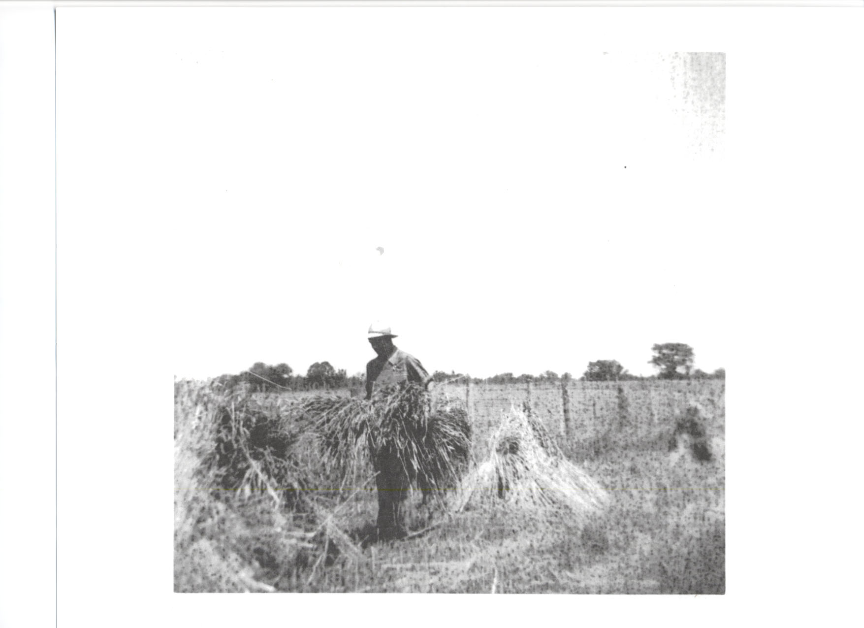 Harry Holdcroft stooking oats on Roy Goodfellow's Maple Lane Farm. Harry and Hazel Holdcroft emigrated from Staffordshire England on April 18, 1954. Harry worked and lived with Roy Goodfellow for 1 year, then R.G. Simpkins for a year and Harold Robertson for 2 years. Agriculture - methods Holdcroft, Harry