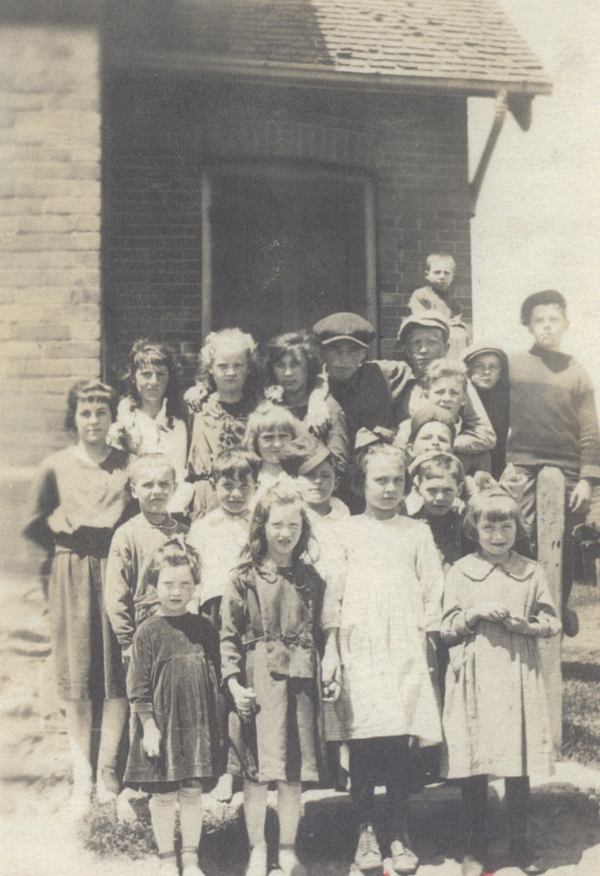 (A) This was Miss Golding (Thompson) Foster's first school where she taught in 1920-1921. Back Row: Ruby Wice,___,___,___,___,Tom Bowman,Parker Kelcey, Joe Cochrane. Second Row: ___,___,___,___,Bruce Wice. Front Row: ___,___, Marjorie Bowman, Audrey Bowman (B)An article taken from the United Church Observer. Further information is available at the Knock Heritage Site