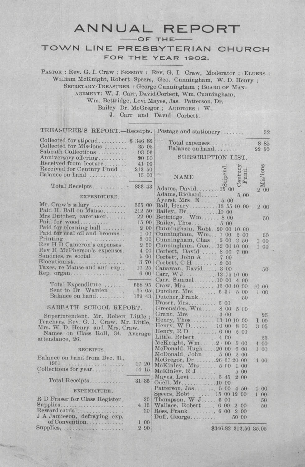 Annual Report of Town Line Presbyterian Church Further information is available at the Knock Heritage Site