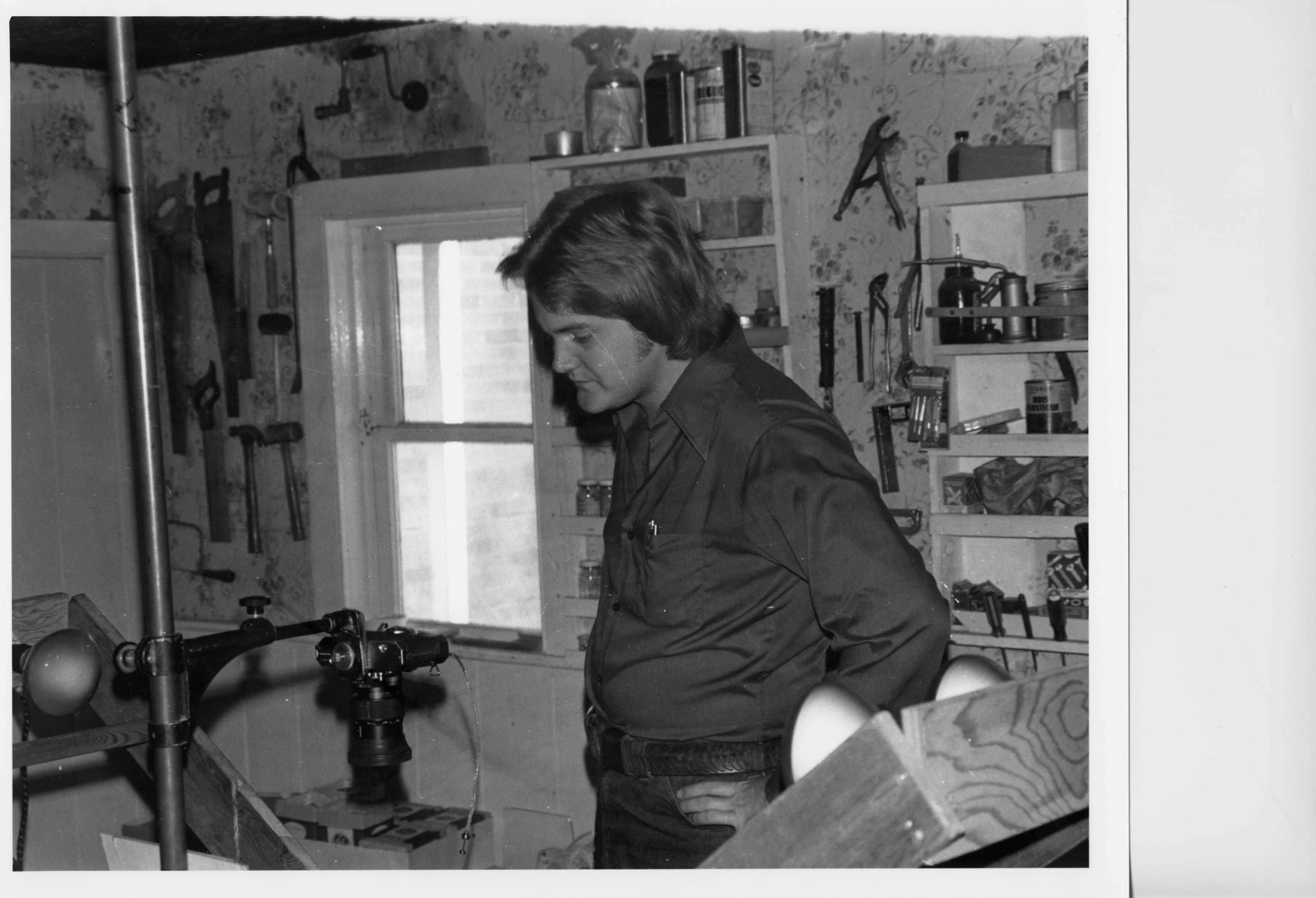 Bill Jamieson in workshop photographing documents from Knock for the Innisfil Historical Society project.