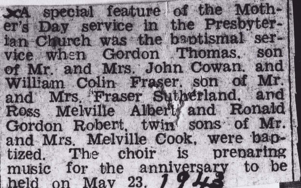 Newspaper report of baptisms in Stroud Presbyterian Church. Further information is available at the Knock Heritage Site