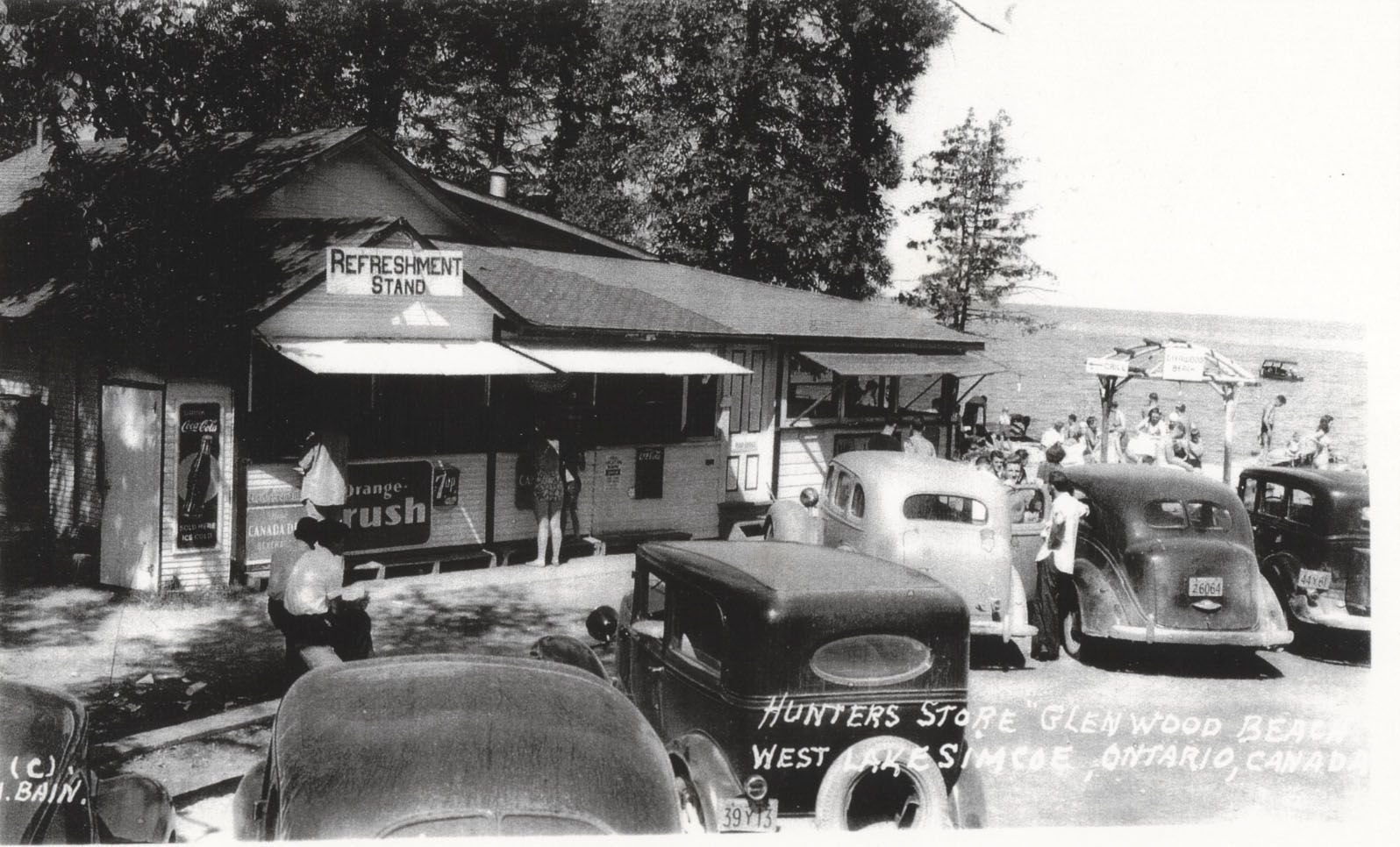 Hunters' Store at Glenwood Beach:- This property was first owned and built by R.G. Simpkin. George and Jean Hunter later converted it to a snack bar and a summer post office. They also had cabins for rent. Ray Florin later operated the Shoreroom Tavern, and lastly Jim Alder owned and operated a restaurant before it burned Circa 1980. Further information is available at the Knock Heritage Site