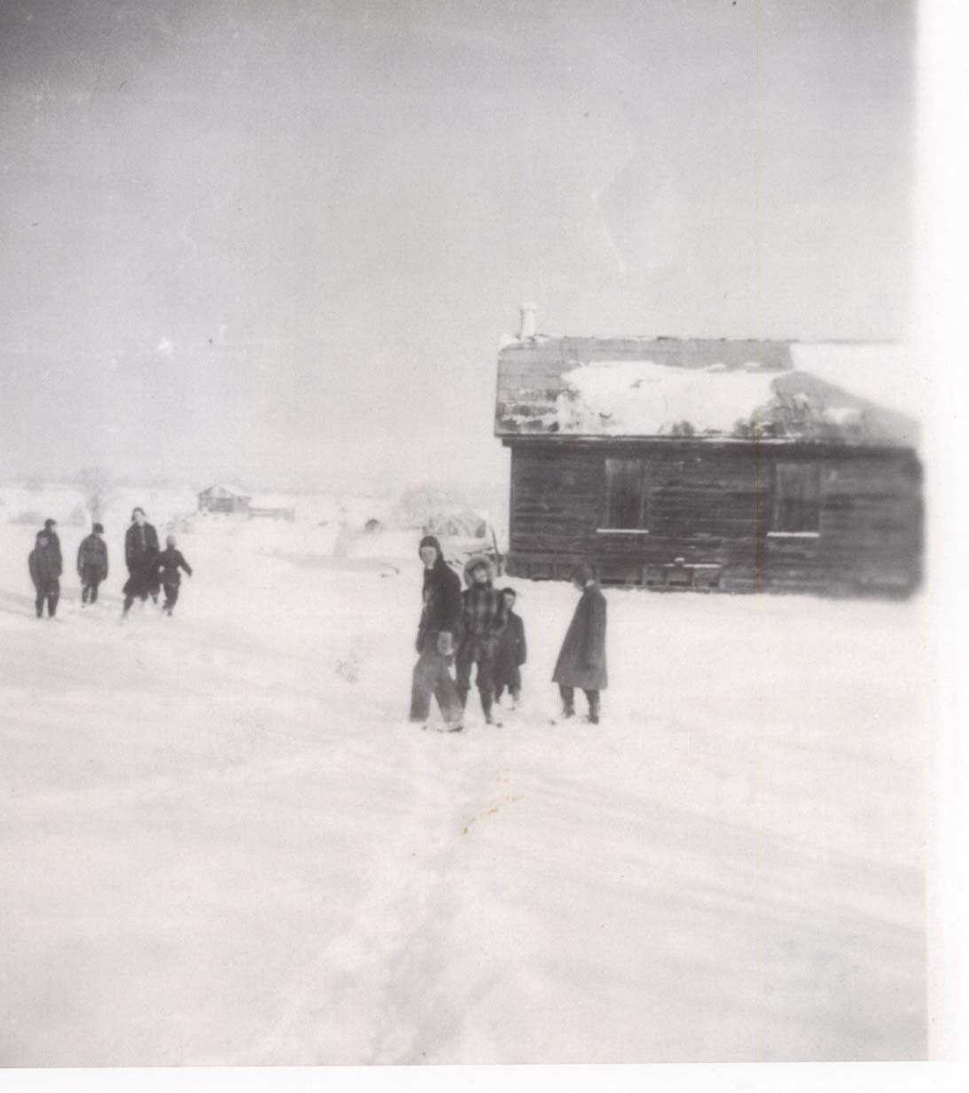 The school at Knock - S.S. # 15 (S1/2 Lot 10-Con. 9) grounds - Students in the yard. Note the Grange Hall in the background Further information is available at the Knock Heritage Site