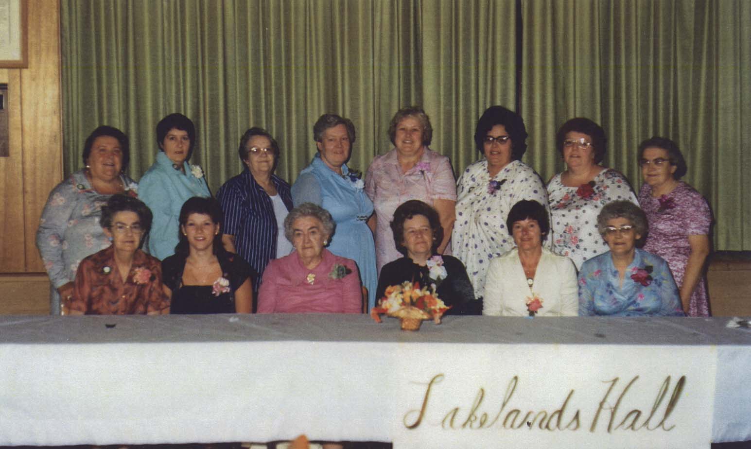 Lakelands Hall on 25th Anniversary Committee - Board of Directors and Trustees of Lakeland's Hall Back row: (l to r) Kathe Jans, Marg Peleck, Lynn Owen, Lois Inglis, Doreen Parker, Heather Clifford, Marie Spring, Mary Wilson Seated: (l to r): Chris Walkem, Debbie Hornung, Doris Booth, President Marg Graham, Beulah Evans, Dorothy Wiggins Alcona - Lakelands Hall 1982