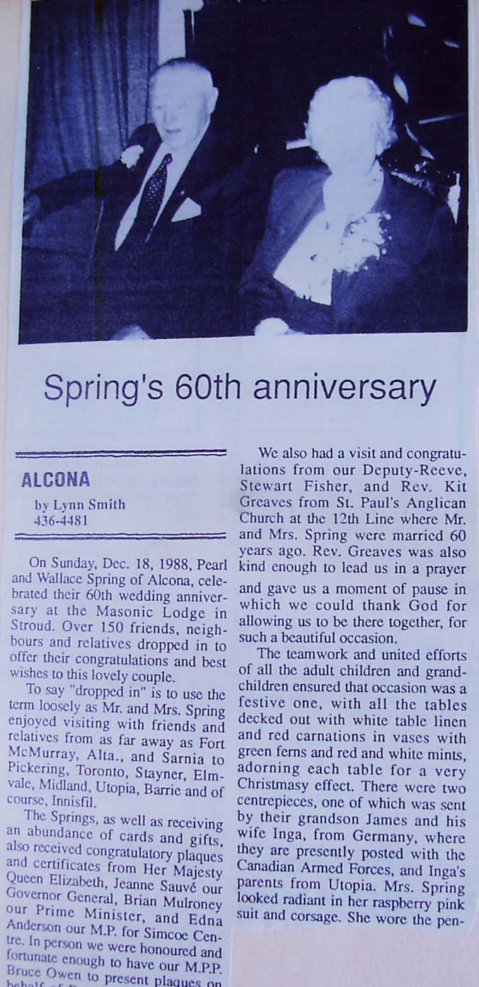 60Th Wedding Anniversary - Mr. and Mrs. Wallace Spring