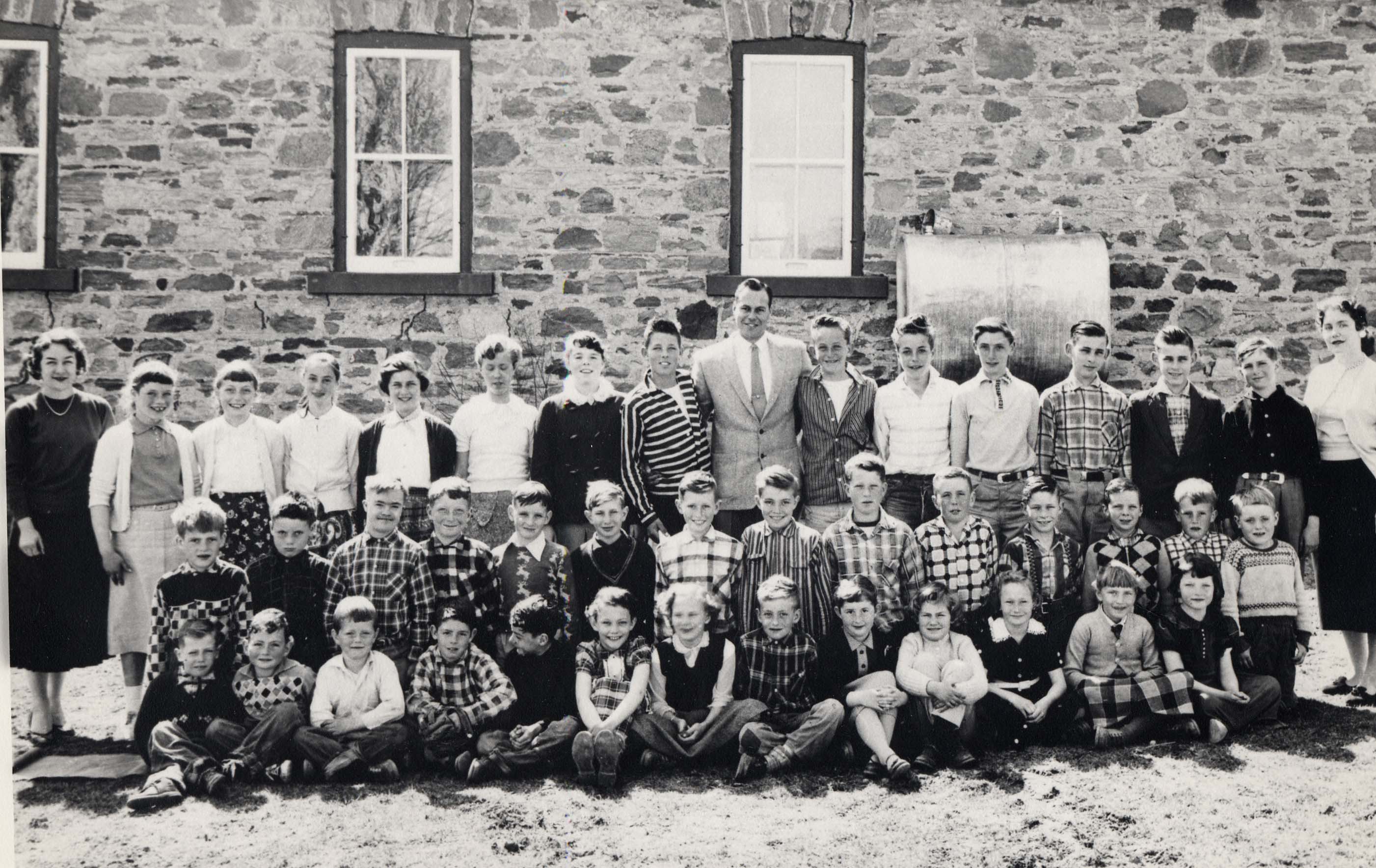 Left to right: Student Teacher, Rosemary Jonah, Jane Beatty, Valentina Schipilow, Reta Cook, June Johnston, ____, ____, Mr. Donald Langford, Teacher, Jimmy Brady, Harry Vieveen, Hana Hagemeir, Ronnie Cook, Ralph Cook, James Neil, Student Teacher Second row: ____, Charlie Jonah, Bernie Baldwin, Stewart Beatty, ____, Alex Neil, ____, ____, Frank Ivanski, ____, ____, ____, ____, David Jonah Front row: ____, John Cameron, ____, ____, Connie Cameron, ____, ____, Dianne McQuarrie, ____, ____, ____, (for complete list of names see Document No. 2158)