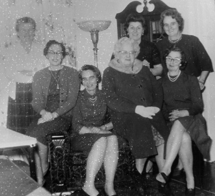 Sitting L to R: Elsie Fleming, Luella Donnelly, Eva Reid, Dorothy Jackson. Standing L to R: Georgina Payne, Stella allard, Betty Dales.