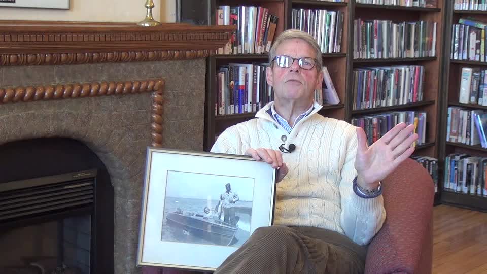 Alan Ely begins by describing a photo of his father and mother fishing on Lake Simcoe. His mother smiles at his father