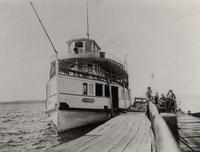 Photo of the "Otonabee", a large lake boat part of the Lake Simcoe Navigation Company, docked at the Government pier in, IHS424