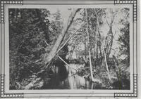 Photo of the 7th Line Creek from the bridge on Lakeshore Road looking toward the lake around 1930. In 1990 the creek was, IHS3666, IHS4018