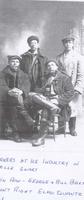 Photograph of four men dressed long coats, boots, and hats who were employed in Belle Ewart as labourers for the ice, IHS3941