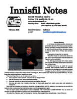 Read the February 2016 issue of Innisfil Notes published by the Innisfil Historical Society. Click on the picture above