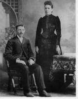 Studio portrait of Robert McCullough (1855-1937) and his wife, Isabella "Bella" Galloway. Robert is dressed in a suit, IHS1721