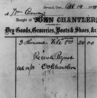 Invoice for 3,000 tile from John Chantler, dealer in dry goods, groceries, boots, shoes, etc., of Stroud to Wm. Cowan. , IHS3137