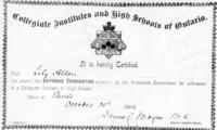 Certificate: Lily Allan passed Entrance examination required by Education Department for admission to Collegiate, IHS1498