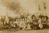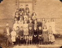 Group photo taken in 1891 of Miss Elder's class in Cookstown Public School. It shows the students arranged in rows on,