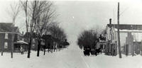 Photograph of the East side (or Innisfil Side) of Cookstown in winter. The photo shows a view of a road running up the, IHS1764