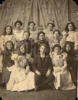 Group studio photo labelled Cookstown Public School - 1895. The photo is atypical as it was taken in a studio instead of,