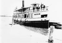 Photo of the Lake Simcoe steamer named "Islay" taken while docked. Several crewmen or passengers are visible standing on, IHS428