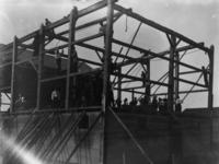 Barn raising: S1/2 Lot 18, Conc. 4. Only known example of a barn with a wooden foundation. Photo by Lydia Beatty. ,