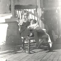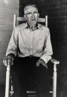 Mr. Wilfred Stewart, husband of Mrs. Bertha Stewart, in old rocking chair on verandah. In 1925 he started to work for, IHS991